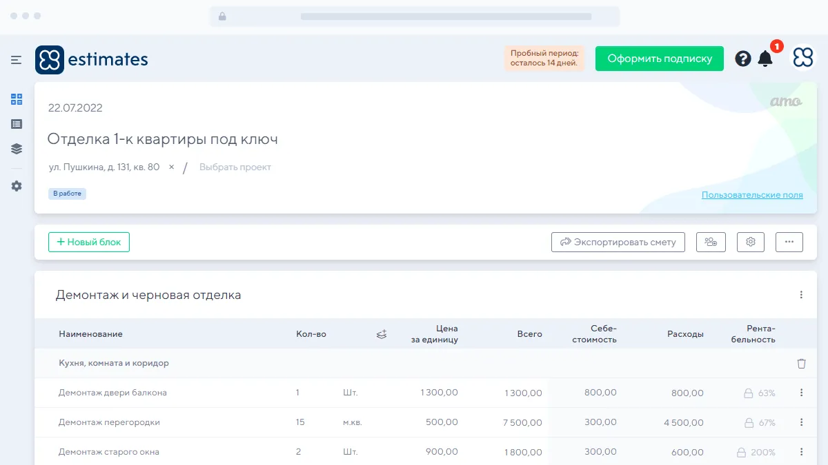 Создание сметы