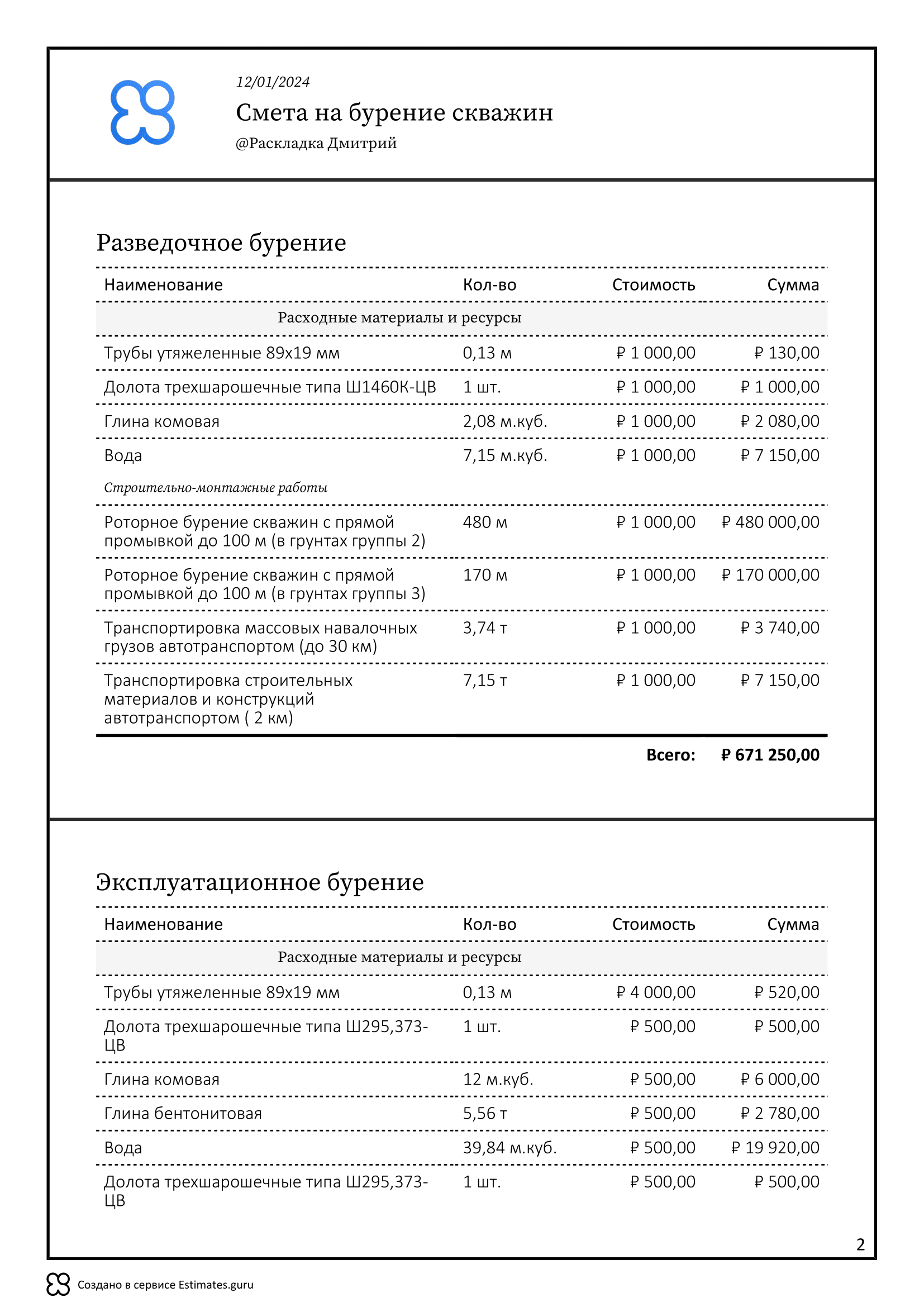 Смета на бурение скважин, поможет подготовить расчет на водоснабжение абиссинской скважины, скважины под воду, скважины в доме или артезианскую скважину, а так же скважину под ключ.