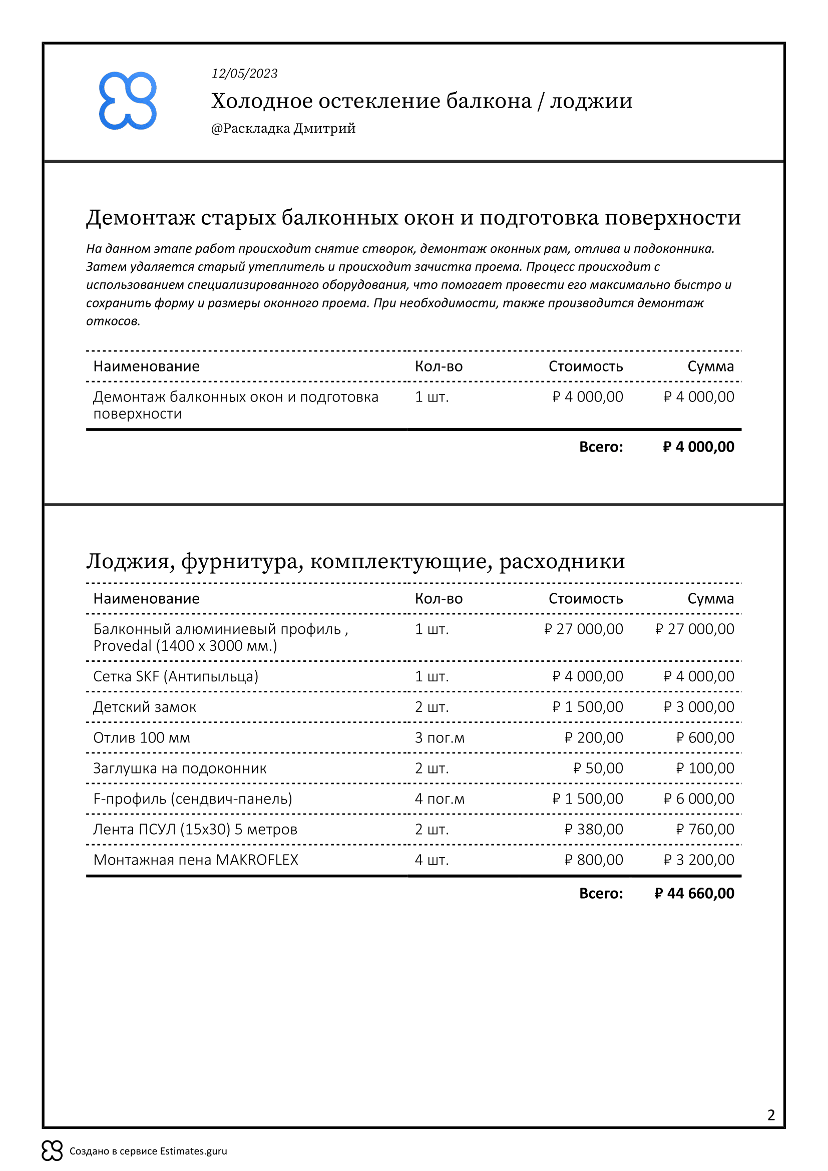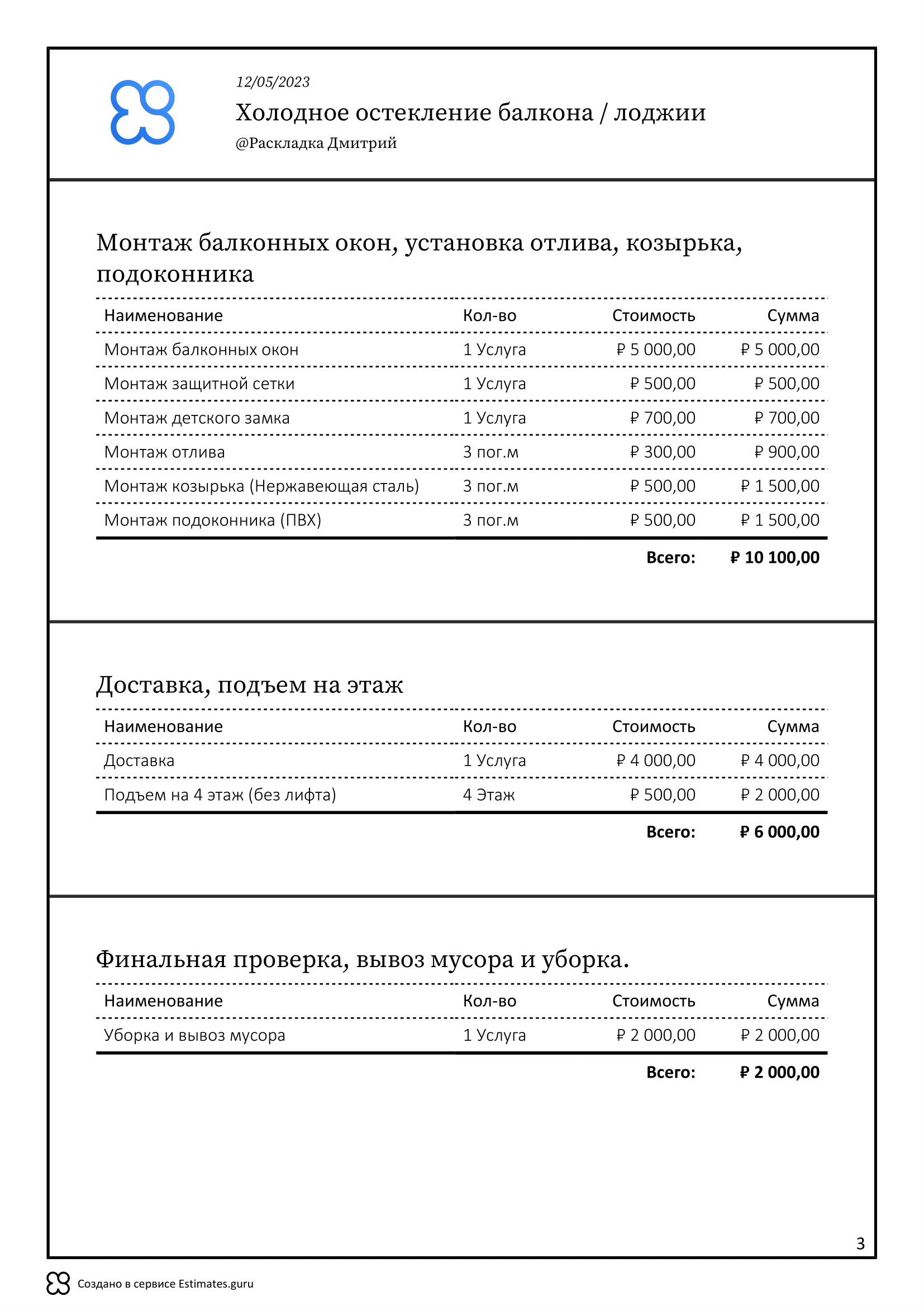 Используйте шаблон на холодное остекление как основу и указав свои цены из вашего прайс-листа вы сможете быстро подготовить расчет на 2022–23 год.