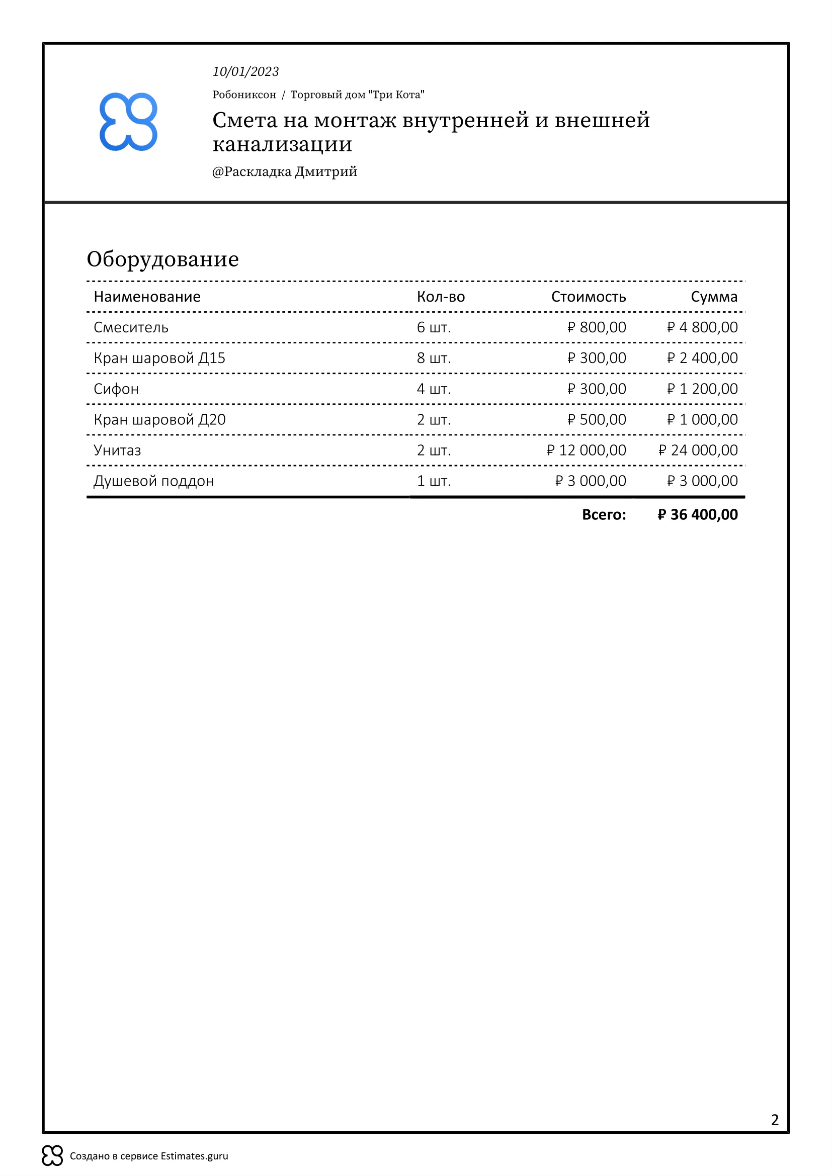 Монтаж канализации расчитан для частного дома, но вы всегда можете адаптировать этот шаблон сметы, добавив дополнительные позиции в раздел водоснабжение, такие как: