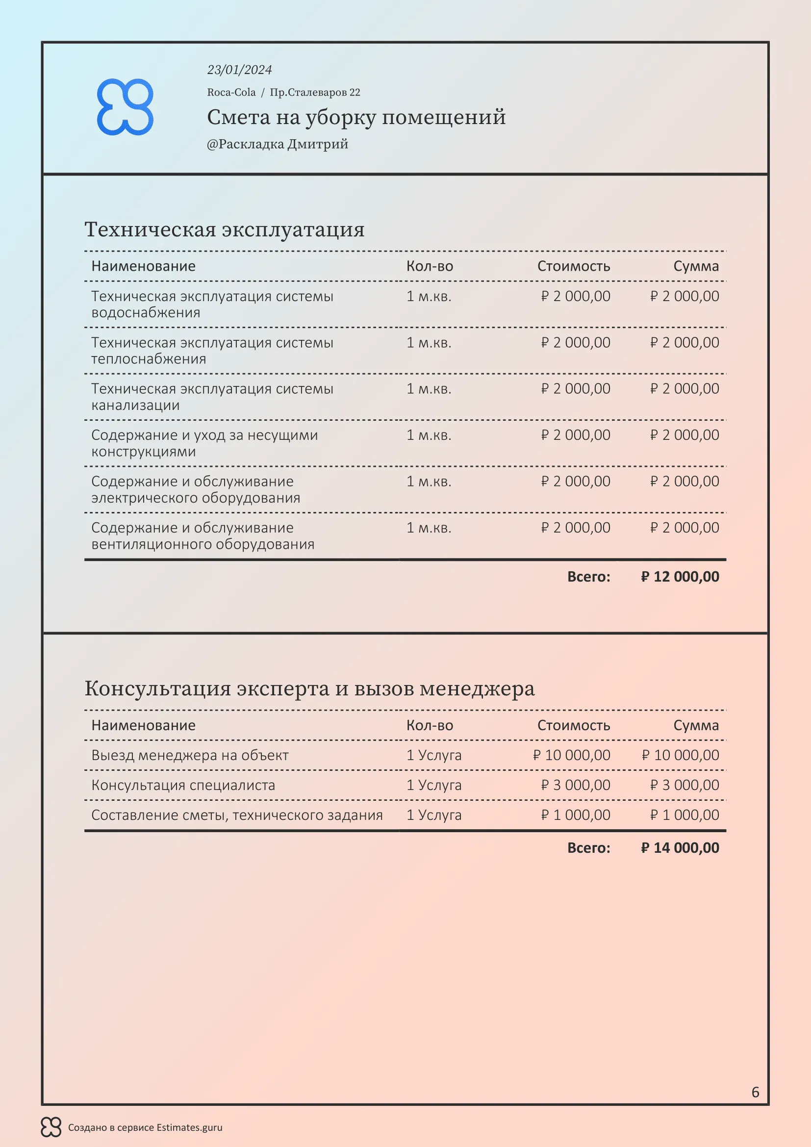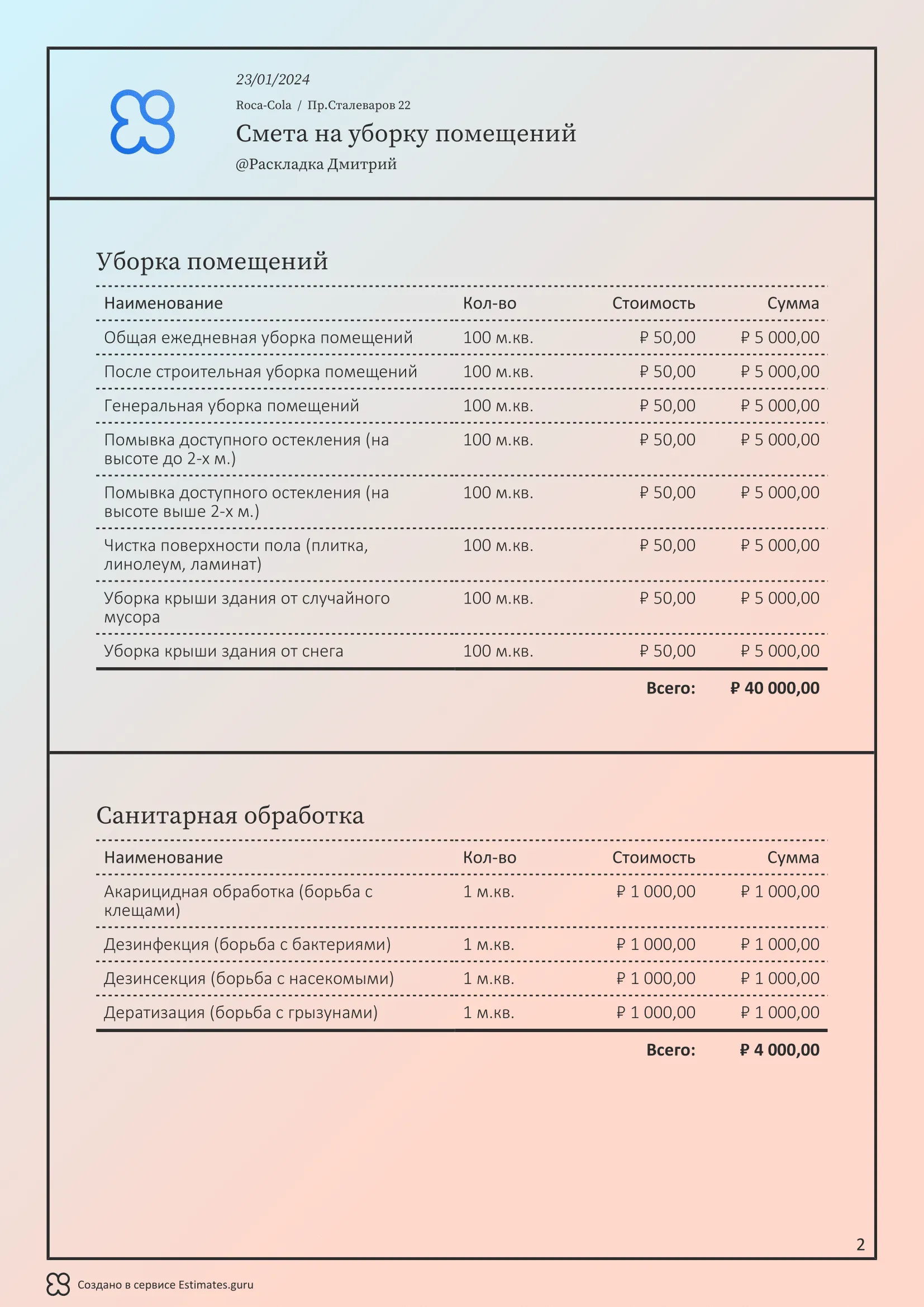 Вы можете дополнить шаблон на уборку помещений, указав актуальные расценки на 2022–23 год из своего прайс-листа.