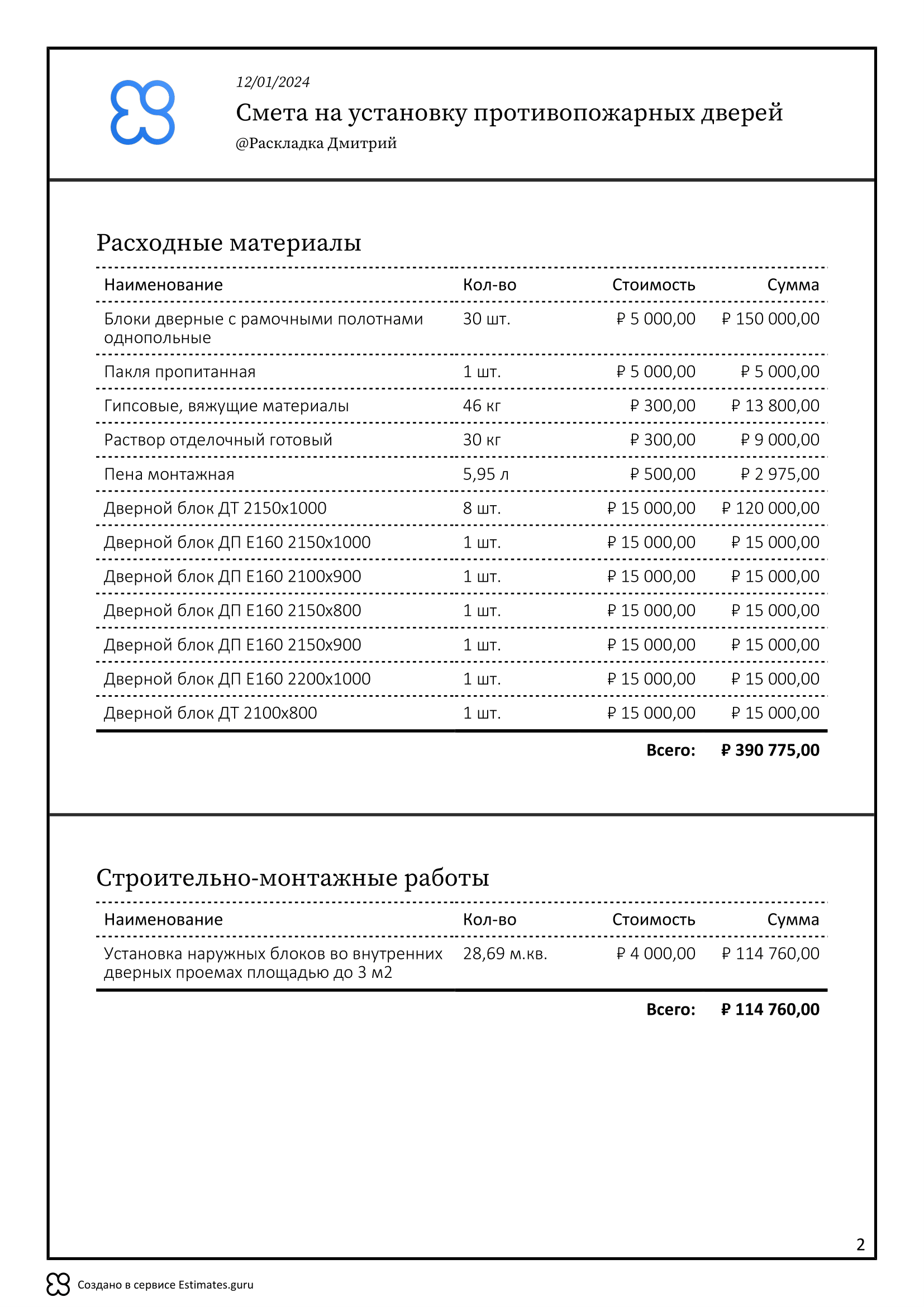 Цены указаны на 2022–23 год, но вы можете улучшить шаблон сметы добавив в него актуальные цены из своего прайс-листа.