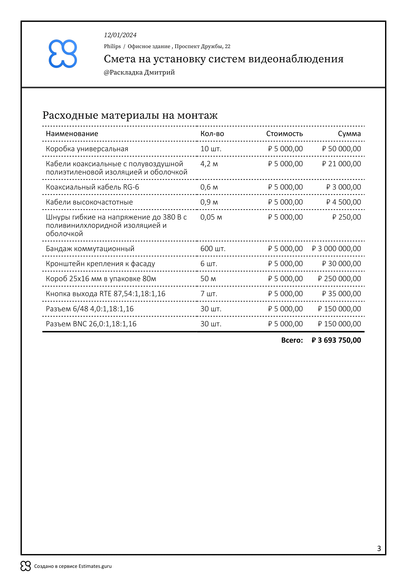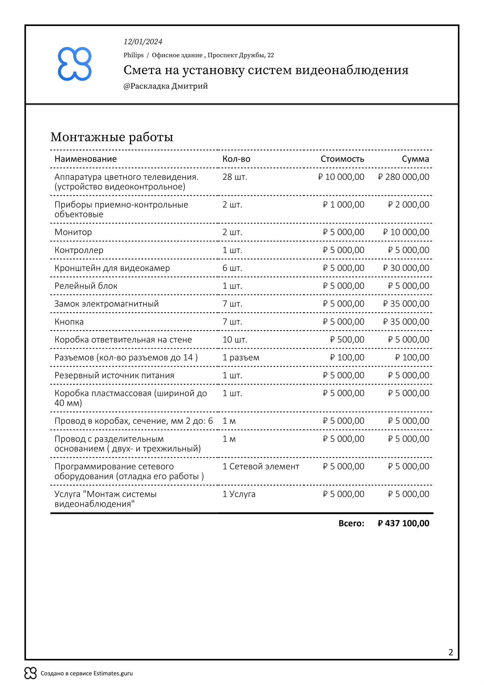 Смета на монтаж видеонаблюдения (монтаж системы видеонаблюдения), включает в себя видеокамеры уличного наблюдения, цены на монтажные работы (2022–23 год), расценки на расходные материалы и примеры работ.
